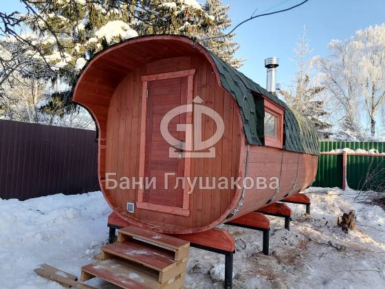 Комплектация: Баня установлена на надежный свайный фундамент, оснащена печью с баком для воды и полностью готова к эксплуатации сразу после монтажа.