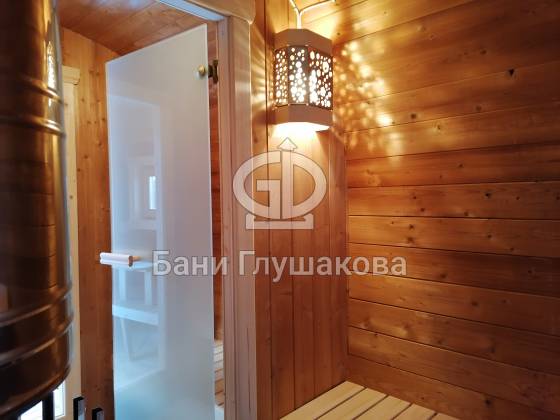 Материал корпуса: Термодерево — это экологичность и долговечность. Оно не боится перепадов влажности и обладает низким коэффициентом теплопроводности, что позволяет бане прогреваться быстрее.