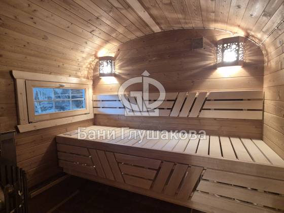 Эргономика парной. Внутри установлены широкие удобные полки и качественное оборудование, обеспечивающее мягкий и глубокий прогрев.