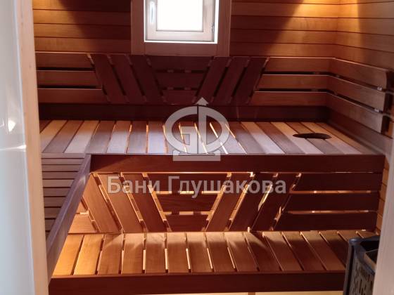 Внутренняя отделка. В парной использованы премиальные материалы: полоки и спинки сложной формы, современная система вентиляции и профессиональное освещение, создающее уютную атмосферу для парения.