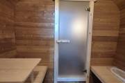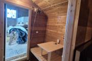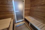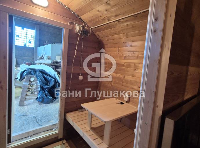 Размер — 2,4 × 4 метра, внутри — два продуманных помещения: комната отдыха и парная. Всё, как нужно, без лишнего.
