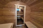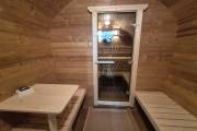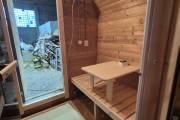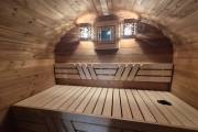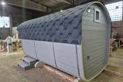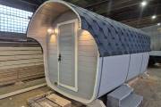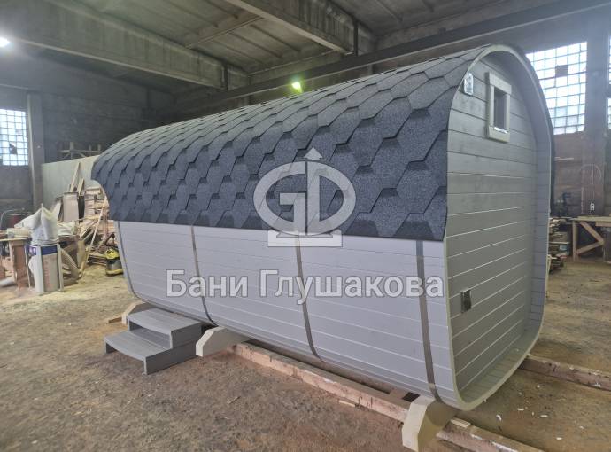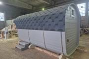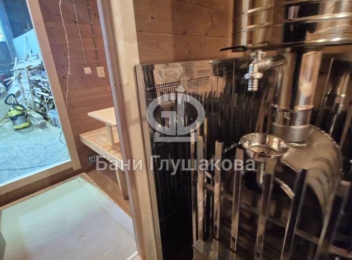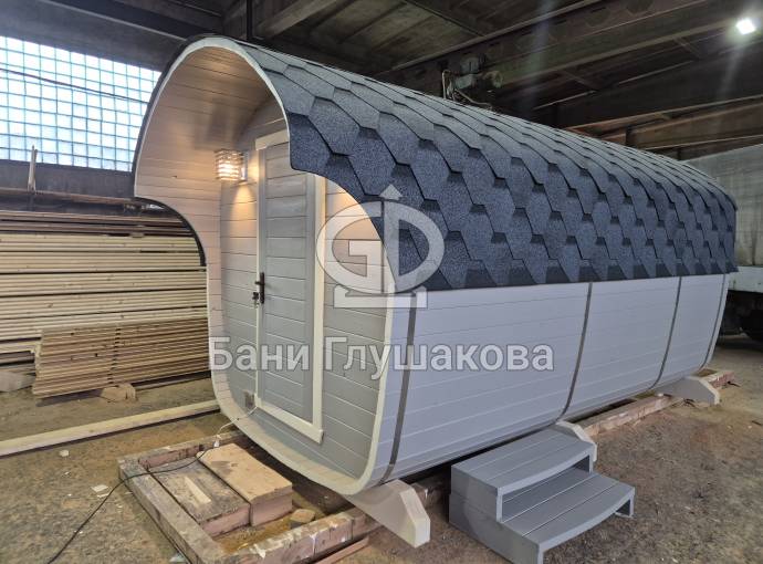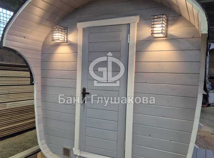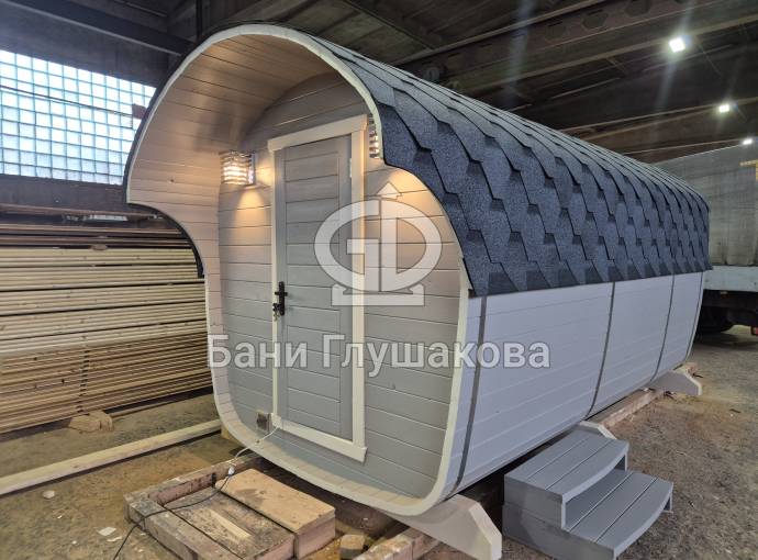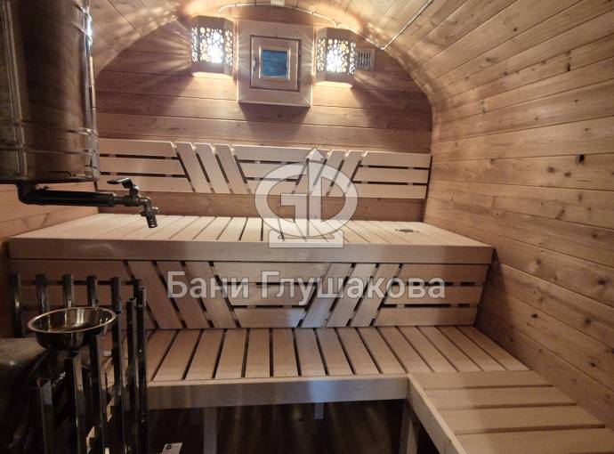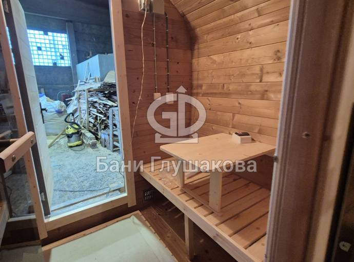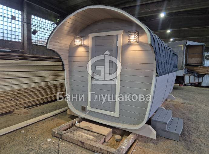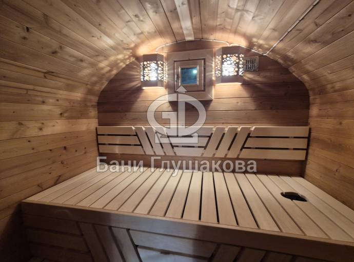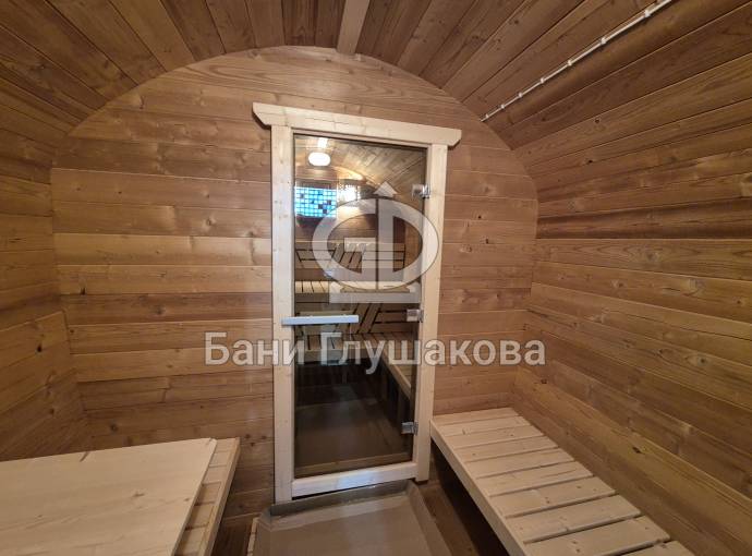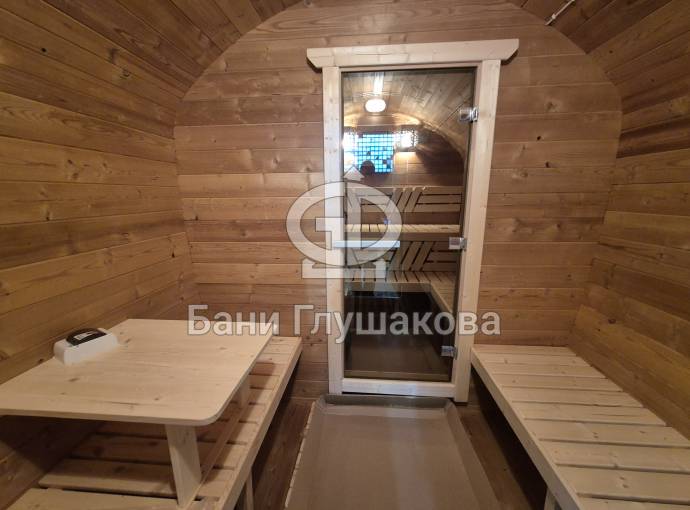 Размер — 2,4 × 4 метра, внутри — два продуманных помещения: комната отдыха и парная. Всё, как нужно, без лишнего.