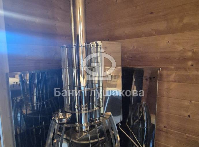 Размер — 2,4 × 4 метра, внутри — два продуманных помещения: комната отдыха и парная. Всё, как нужно, без лишнего.