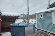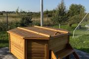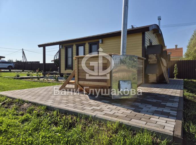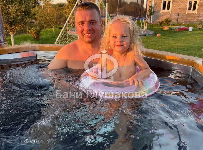 Снаружи купель обшита термомодифицированной вагонкой, которой не страшны сырость и палящее солнце. Материал по свойствам напоминает пластик.