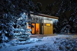 В начале апреля 2021 изготовлена новая перевозная баня каркасной сборки. Модель с дровяником с одной стороны.