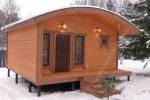 Это оригинальная разработка Дмитрия Глушакова. Баню такого вида можно заказать только в нашей компании. Эффектный дизайн получилось совместить с функциональностью: