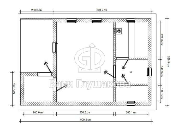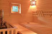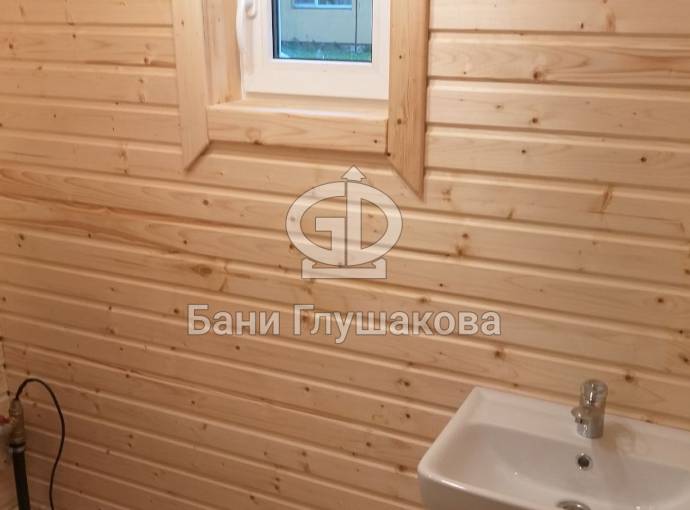 Из помывочной ведут две двери: налево — в парную, направо — в санузел, где удобно размещается всё оборудование для душевой системы.