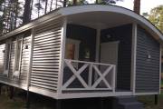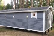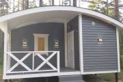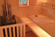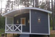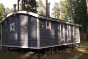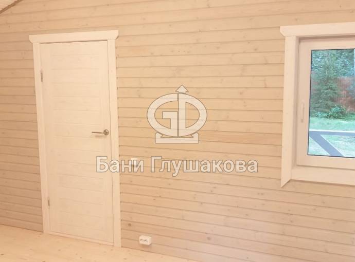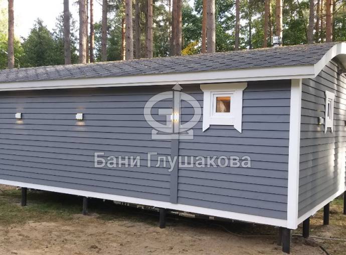 Размер бани — 5,3 × 8 метров, из которых 3,3 × 2 метра занимает уютная терраса — идеальное место для отдыха после парной или чашки чая на свежем воздухе.
