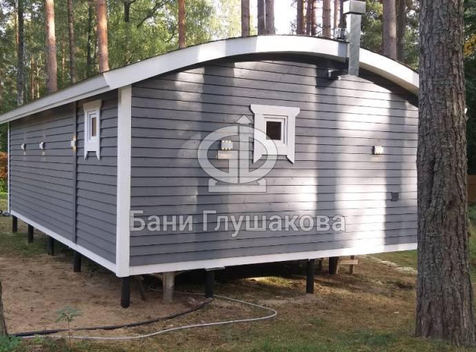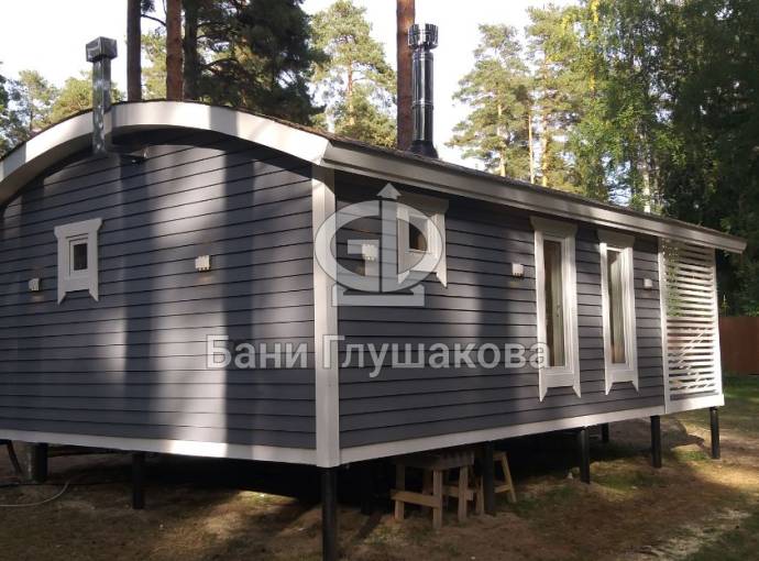 Баня «Бурже» — это сочетание фирменного стиля и продуманной функциональности. Её легко узнать по округлой крыше и высоким панорамным окнам, которые наполняют интерьер светом и создают ощущение простора.