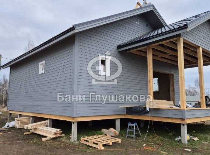 Каркасный дом 9х9 с двумя спальнями и террасой 3х6