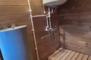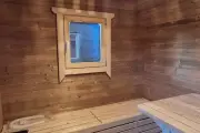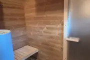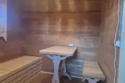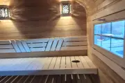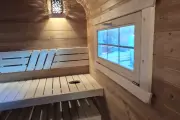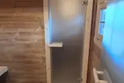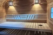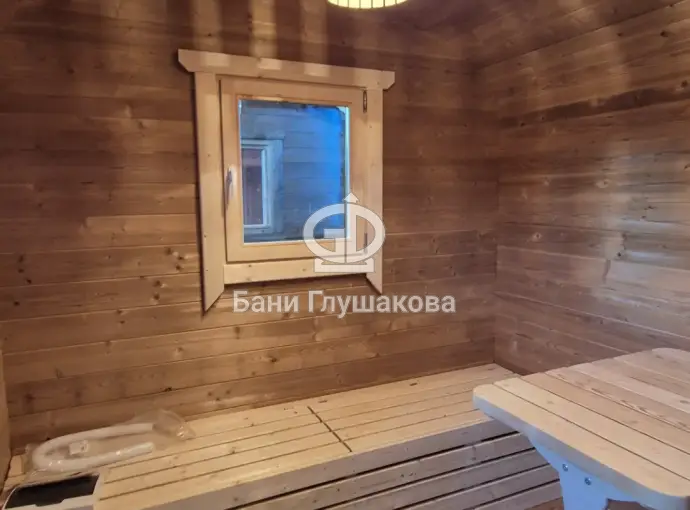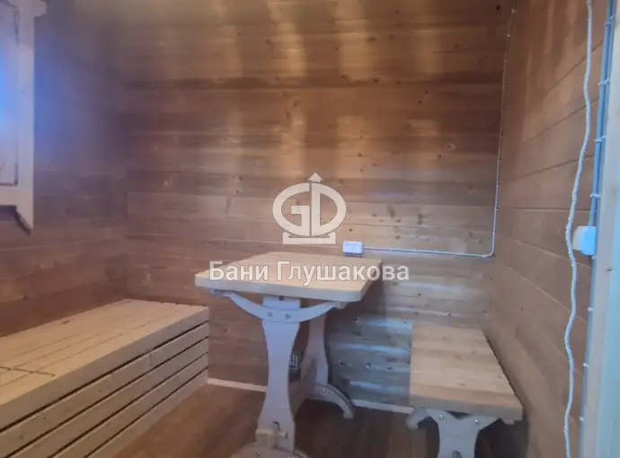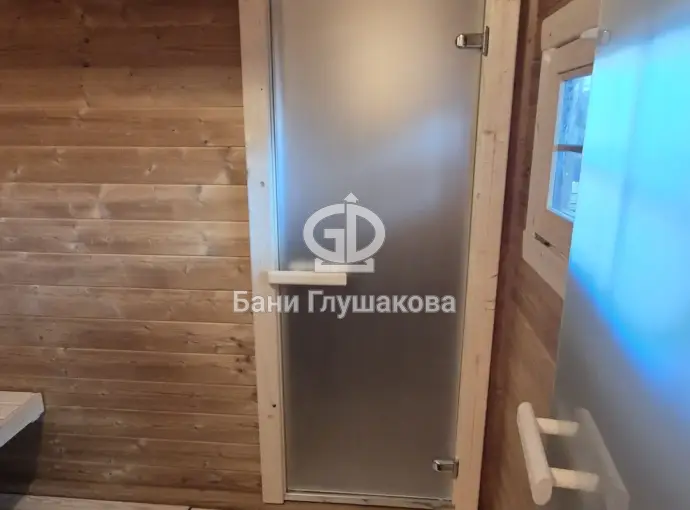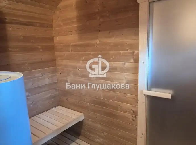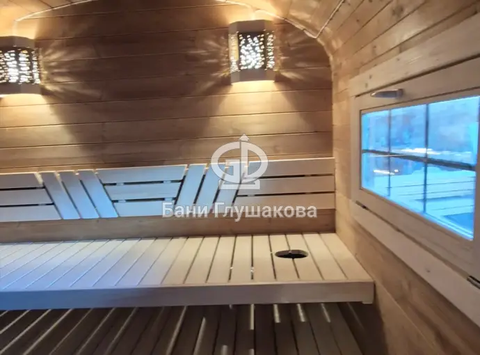 Размер 2,4 на 6 метров, 3 отделения – комната отдыха, душевое помещение, парная.