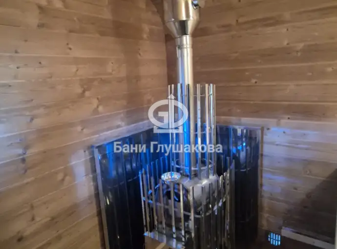 Установлена очень мощная печь с закрытой каменкой «ГИД 4», которая обеспечит отличный лёгкий пар. Печь ОЧЕНЬ мощная.