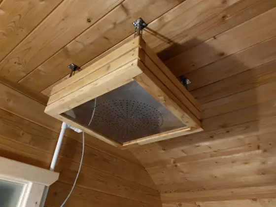 Обливное устройство хоть и не обязательный атрибут бани, но весьма желательный — холодный каскад воды здорово бодрит после жаркой парной.