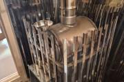 Печь оснащена внутренней закрытой ёмкостью, куда закладываются камни. Она расположена внутри печи непосредственно там, где самое жаркое место. Это позволяет нагревать камни до 400-500С. Тогда получается мелкодисперсный перегретый пар, который легко переносится и не так экстремально повышает влажность в парной.