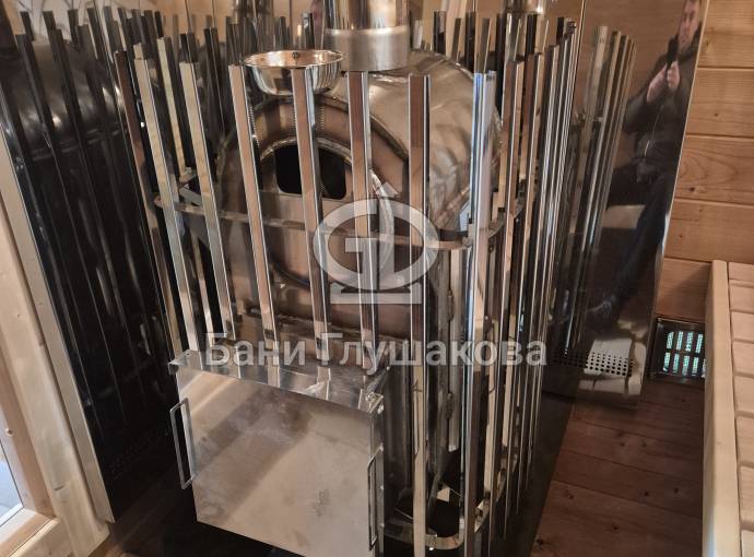 Мощная стальная печь для бани и сауны «ГИД 4» с короткой топкой – это наша оригинальная разработка. Придумана и изготовлена компанией Дмитрия Глушакова.